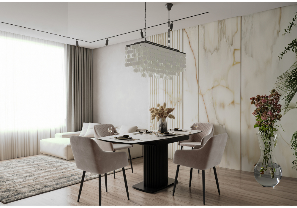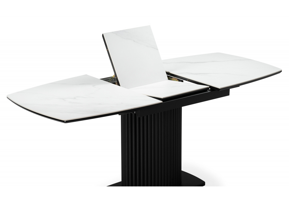 Керамический стол Фестер 140(180)х80 белый мрамор snow white / черный