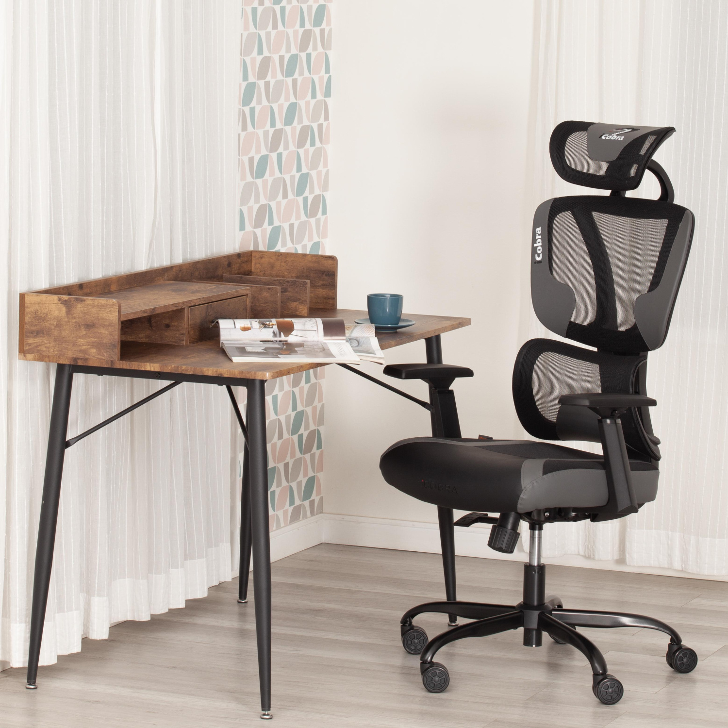 Кресло iCobra ткань / иск. кожа, черный / серый, 70х70х125 см