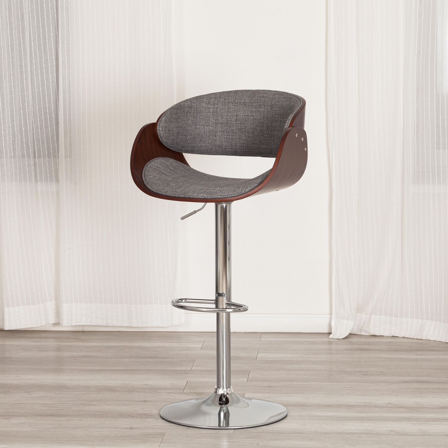 Стул барный Ландо/Lando (мод.4036) металл/дерево/ткань, 59х51х93-114см, высота сиденья 62-83см, серы