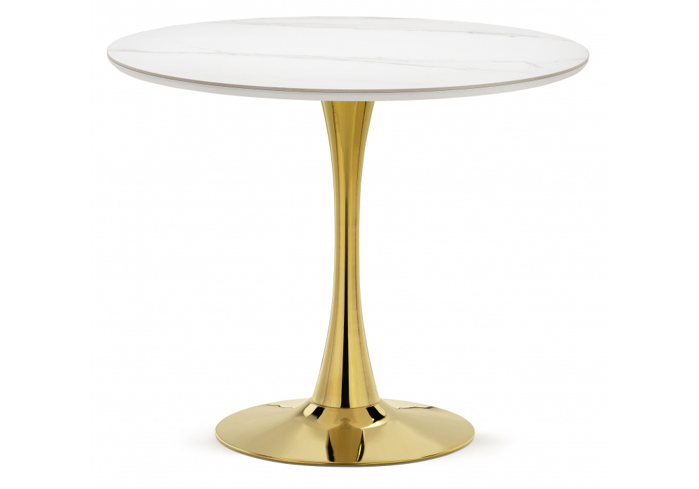 Керамический стол Тулип 90х73 белый мрамор / золото