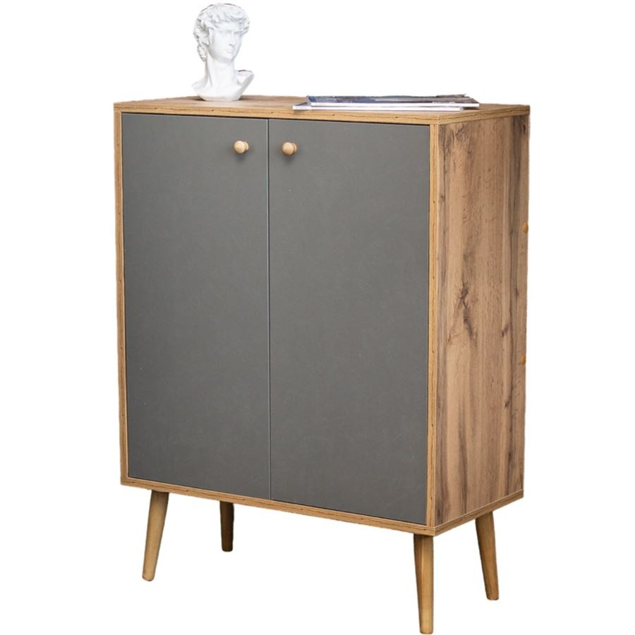 Комод Komo-3 (700х330х930 мм, ЛДСП Дуб Вотан/Серый 16мм, ножки береза)