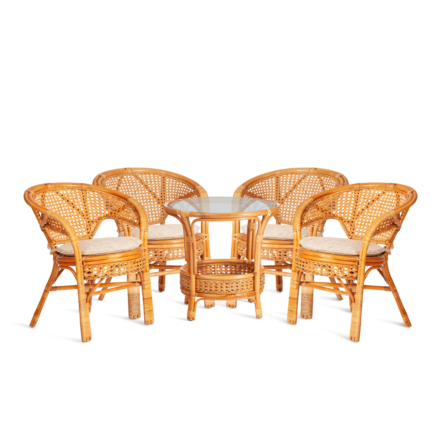 Комплект "PELANGI" 02/15 ( стол со стеклом + 4 кресла ) [с подушками] ротанг, кресло 65х65х77см, ст