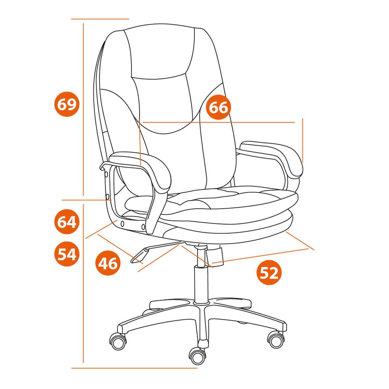 Габаритная глубина кресла (от крайней задней точки спинки до передней точки69
