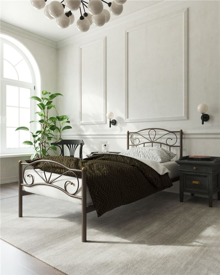 Кровать с изножьем "Глэдис" (90х200/ноги металл/цвет Коричневый бархат)