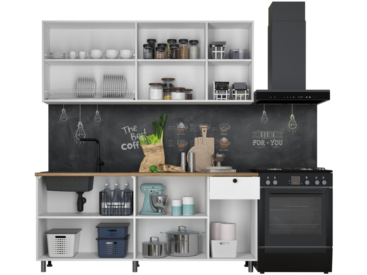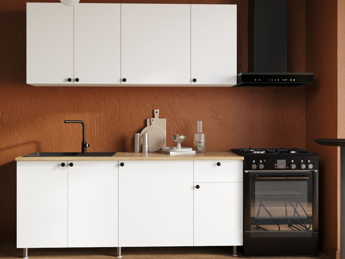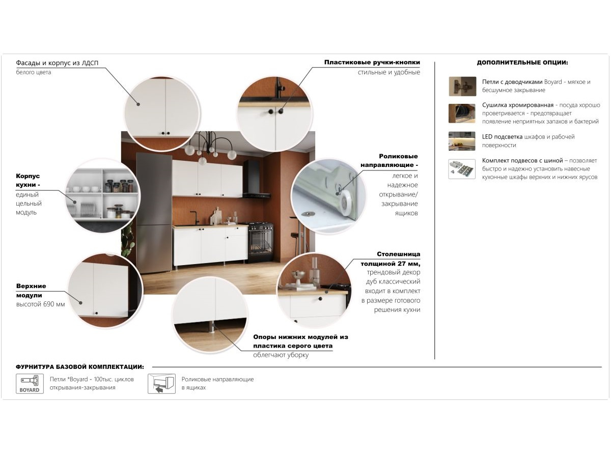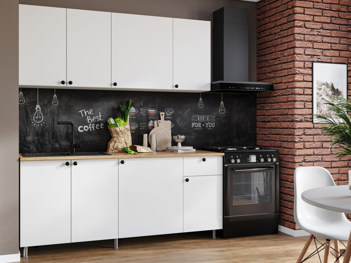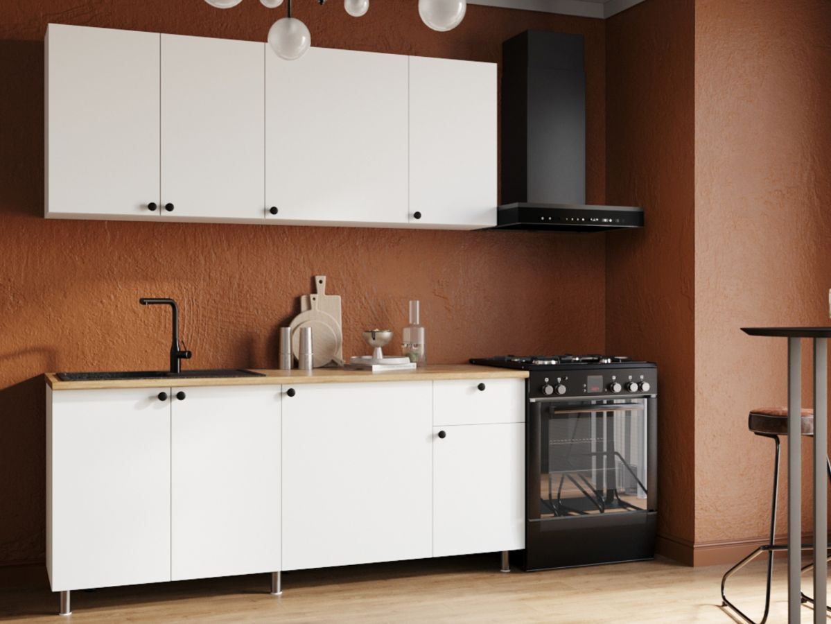 Кухонный гарнитур «Ева» 180см, Белый шагрень (дуб классический)