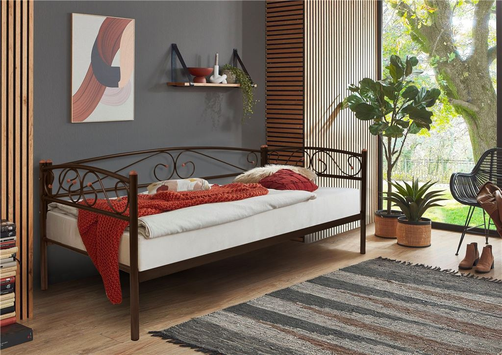 Кушетка Оптима Люкс (90х200/металлическое основание) Коричневый бархат