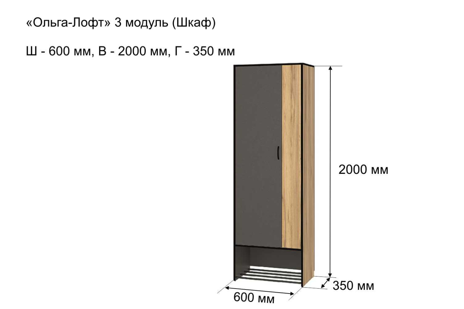 Шкаф ОЛЬГА-ЛОФТ 3, Дуб Крафт Золотой, Темно Серый