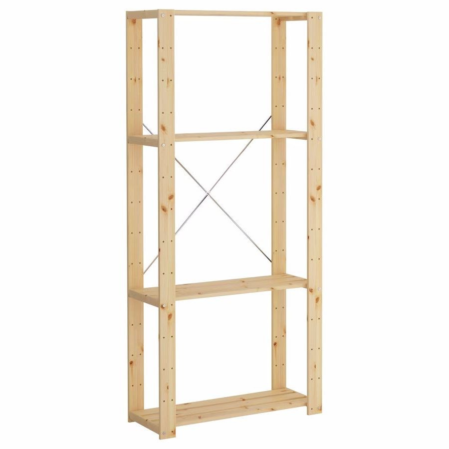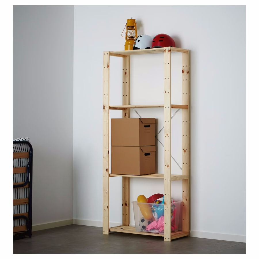 Стеллаж Хей с полками из реек (натуральный) 171х78х30