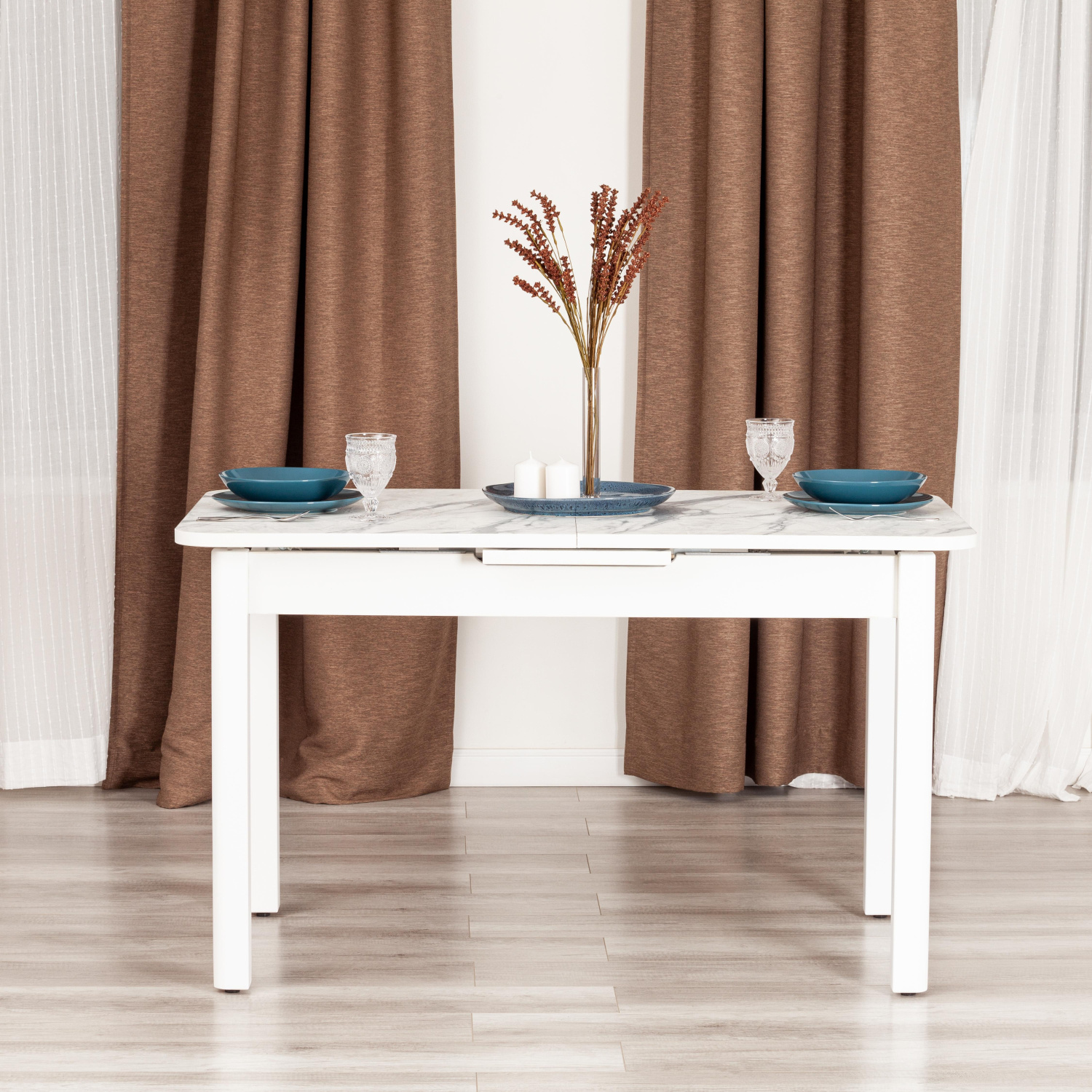 Стол обеденный раздвижной Алигери/Aligery ЛДСП/HPL/опора-массив березы, 130-160х75х75см, мрамор свет