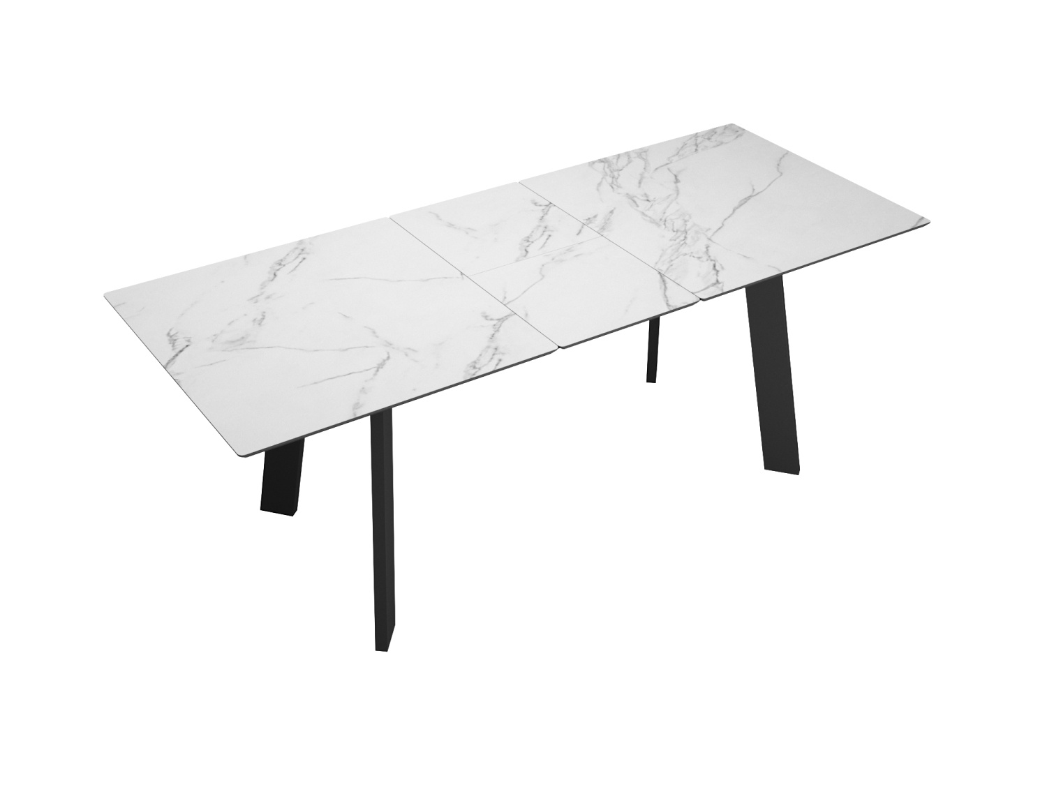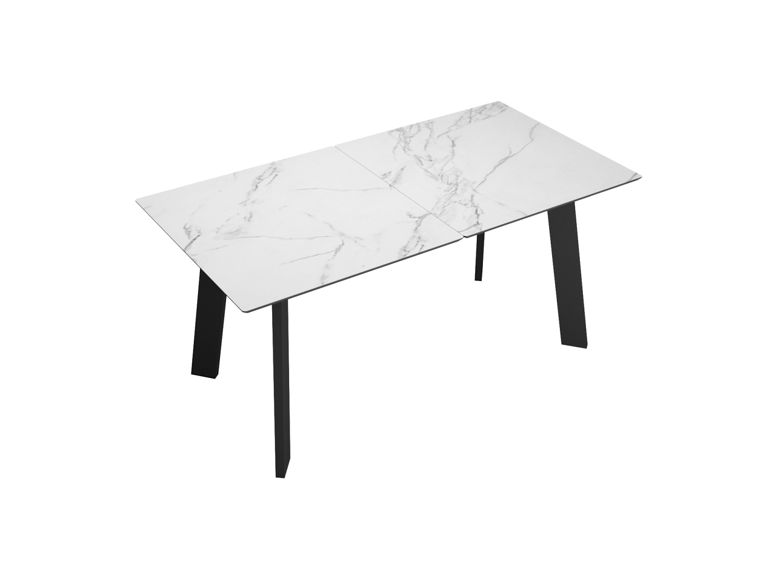 Стол DikLine DKH160, керамика 160(200)х90, мрамор белый матовый, опоры черные (2 уп.)