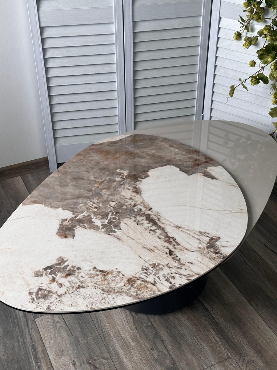 Дизайнерский стол кофейный НИКЛАС (NIKLAS) цвет PANDORA с глянцевой керамической поверхностью