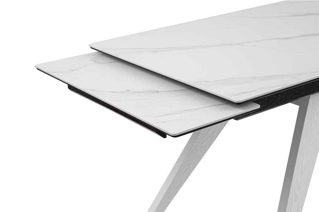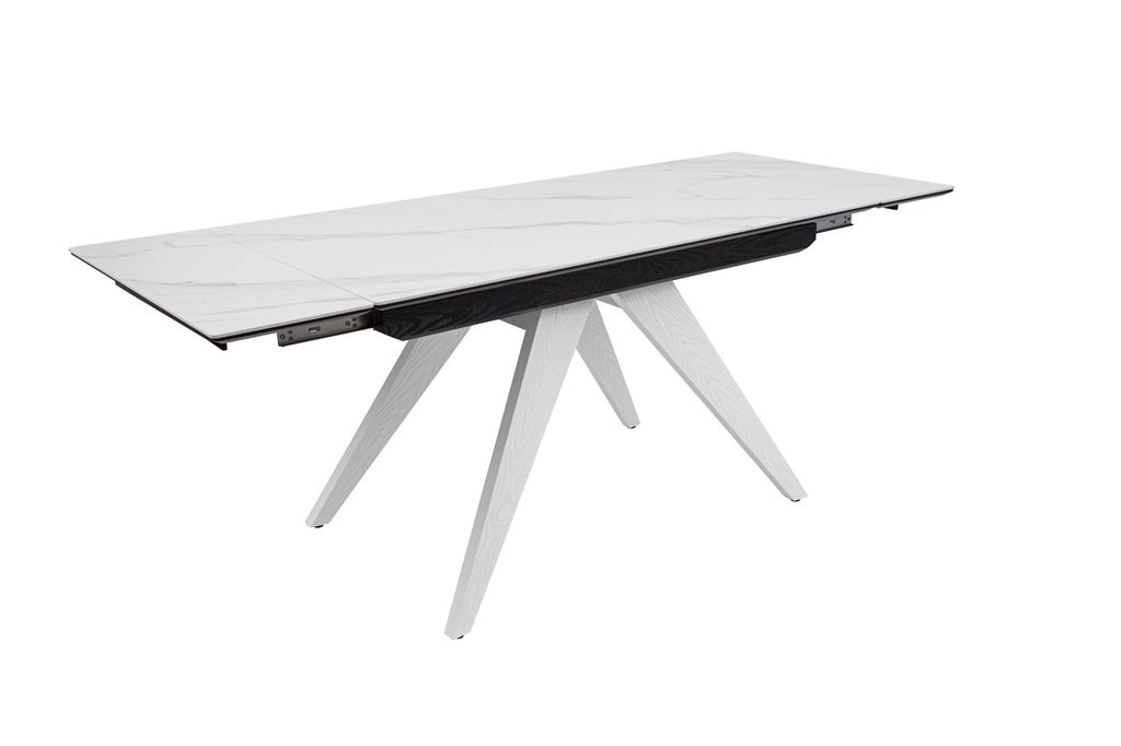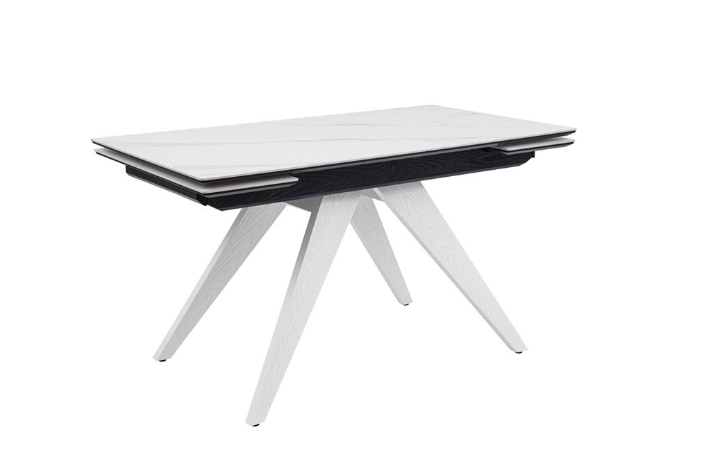 Стол Невада керамика (1400*800+300+300/керамика Gilf white/подстолье черный/ноги белый)