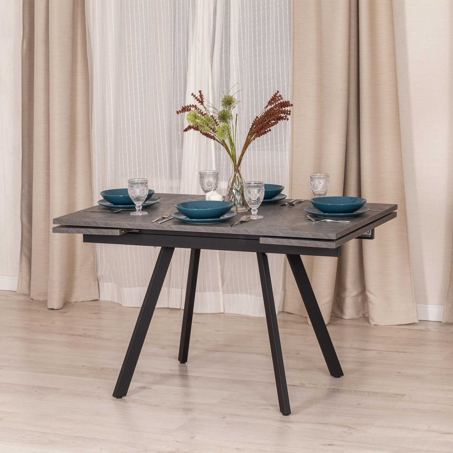 Стол обеденный раздвижной Виго/Vigo ЛДСП/HPL/металл, 120-180х80х75см, мрамор чёрный/чёрный