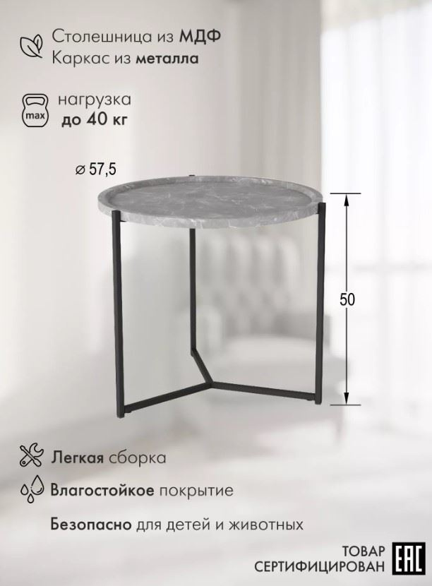 Стол журнальный Бруно (Серый мрамор)