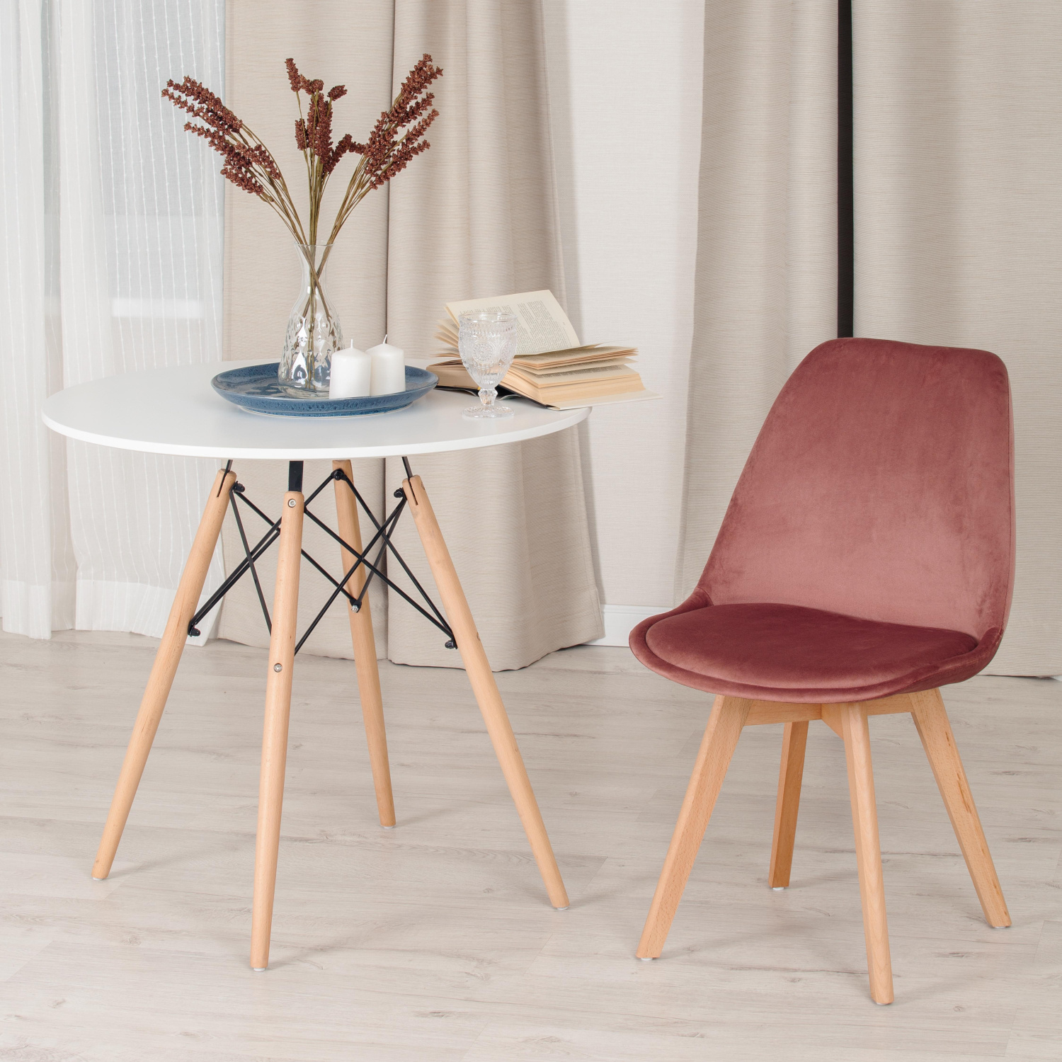 Стул Тулип Софт/Tulip Soft (мод.74)/1 шт. в упаковке вельвет/дерево, 54х47х83см, коралловый /натурал